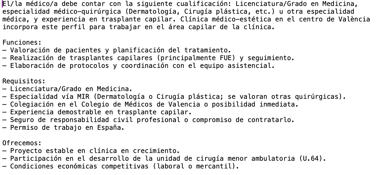 MÉDICO/A TRASPLANTE CAPILAR – VALÈNCIA